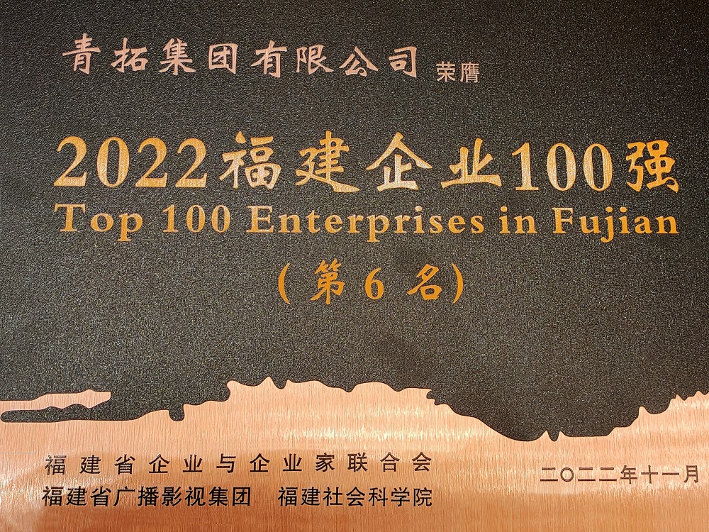 為貫徹落實習近平新時代中國特色社會主義思想和黨的二十大精神,持續(xù)樹立福建省大型企業(yè)標桿,發(fā)揮大型企業(yè)龍頭帶動作用,有效促進福建企業(yè)做大做強,12月7日,福建省企業(yè)與企業(yè)家聯(lián)合會和福建省廣播影視集團、福建社會科學院在莆田市聯(lián)合召開了2022福建企業(yè) 100 強發(fā)布大會。青拓集團榮列2022福建企業(yè)100強第6位、制造業(yè)企業(yè)100強第2位。