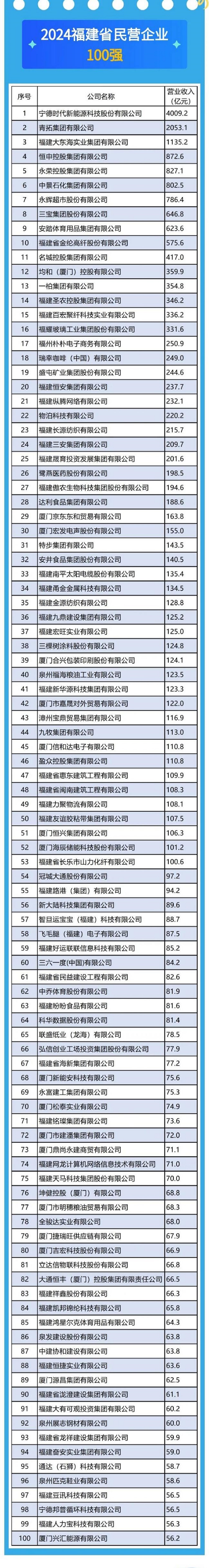 9月19日,福建省工商聯(lián)發(fā)布2024福建省民營(yíng)企業(yè)100強(qiáng)、制造業(yè)民營(yíng)企業(yè)100強(qiáng)、服務(wù)業(yè)民營(yíng)企業(yè)100強(qiáng)、創(chuàng)新型民營(yíng)企業(yè)100強(qiáng)和民營(yíng)企業(yè)社會(huì)責(zé)任100佳5個(gè)榜單。青拓集團(tuán)有限公司憑借其卓越的經(jīng)營(yíng)業(yè)績(jī)和強(qiáng)大的綜合實(shí)力,再次脫穎而出,榮獲福建省民營(yíng)企業(yè)100強(qiáng)第二名和制造業(yè)民營(yíng)企業(yè)100強(qiáng)第二名。