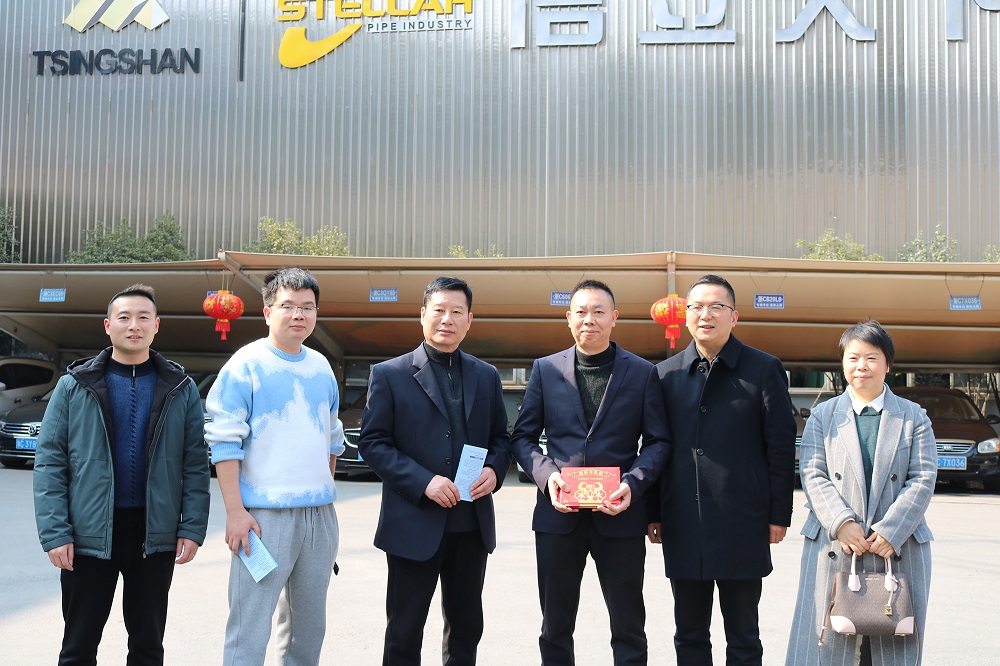 2月5日下午,青田縣經(jīng)濟(jì)商務(wù)局局長(zhǎng)劉會(huì)榮、副局長(zhǎng)吳海燕一行為浙江青山鋼管有限公司留青過年員工送來新春大禮包,在確保做好疫情防控工作的同時(shí),讓廣大員工度過一個(gè)溫馨、歡樂、祥和的新春佳節(jié)。