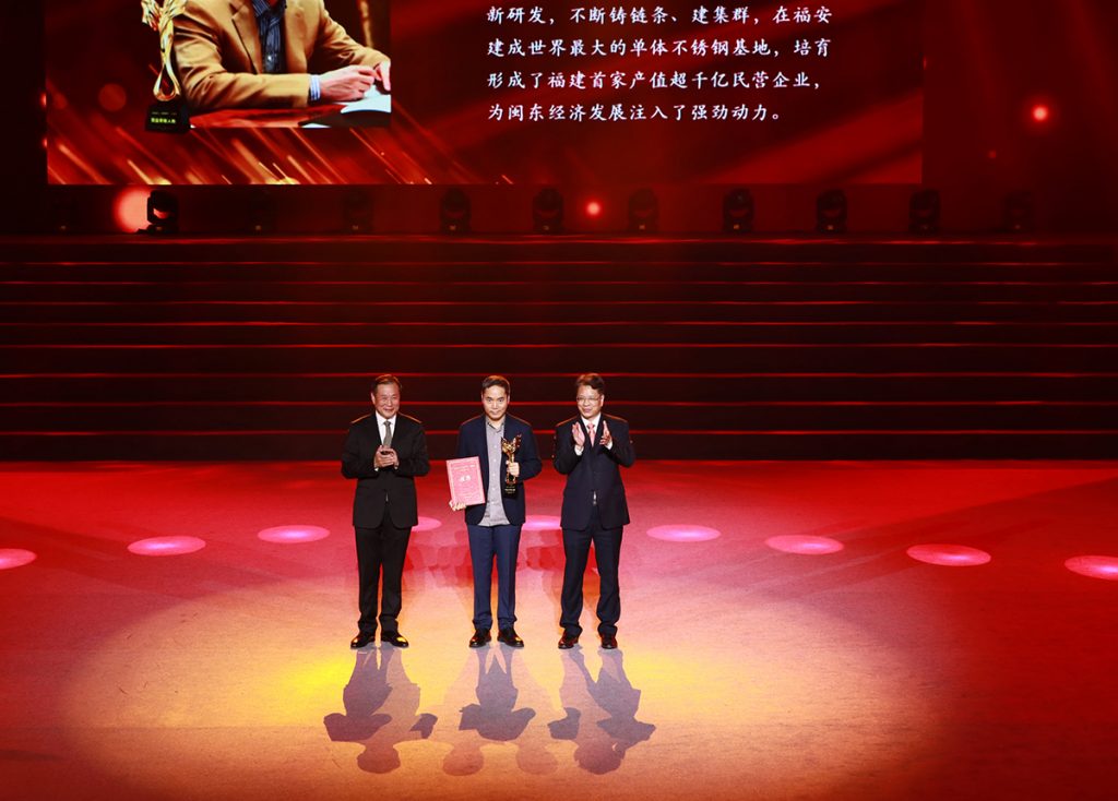在“日出三都澳”文藝晚會暨“‘弱鳥先飛、滴水穿石’30年”突出貢獻(xiàn)人物頒獎活動上,項光達(dá)主席作為十大突出貢獻(xiàn)人物之一上臺領(lǐng)獎,寧德市委書記郭錫文、寧德市政府市長梁偉新為其頒獎。
