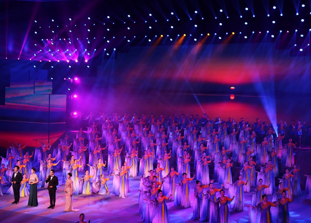 本次文藝晚會由序幕、三個篇章、尾聲構(gòu)成,共13個節(jié)目,以恢弘大氣的舞臺設(shè)計、形式多樣的歌舞表演展現(xiàn)了寧德撤地設(shè)市20年來的風(fēng)雨巨變。歌舞《鏗鏘的節(jié)拍》,節(jié)奏明快,氣勢雄渾,反映了以青拓集團(tuán)有限公司為代表的寧德“金娃娃”企業(yè)奮發(fā)向上的全新風(fēng)貌,如詩篇樂章般跌宕起伏,振奮人心。