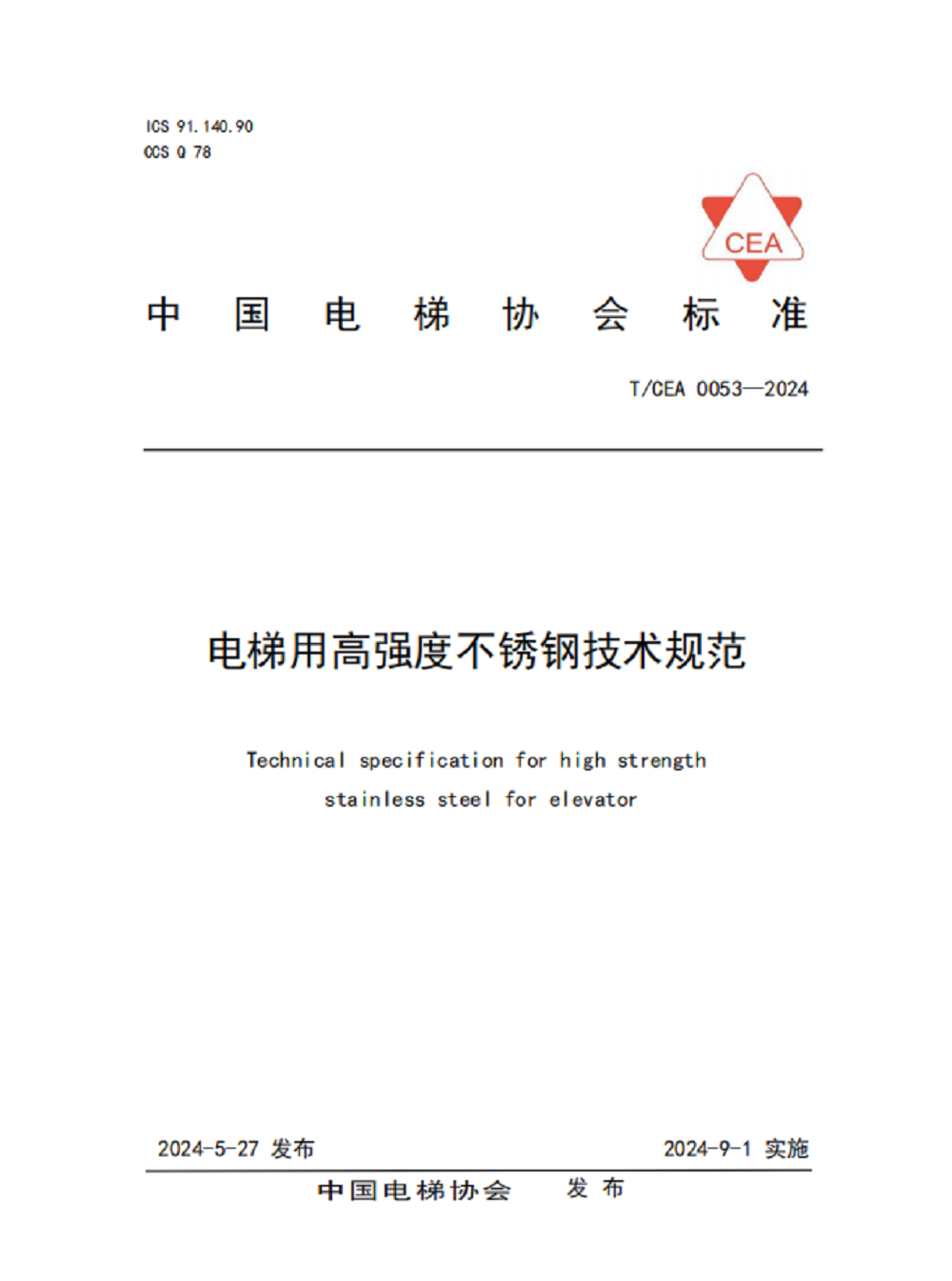 5月27日,中國電梯協(xié)會發(fā)布標準T/CEA 0053-2024《電梯用高強度不銹鋼技術(shù)規(guī)范》,高強度不銹鋼可減薄7~10%。該標準由青拓集團有限公司主編,聯(lián)合巨龍電梯有限公司、奧的斯電梯(中國)有限公司、通力電梯有限公司、張家港市勇樂不銹鋼有限公司、建研機械檢驗檢測(北京)有限公司等十余家電梯不銹鋼原材料制造商、整機制造商、表面加工商、專業(yè)檢測機構(gòu)共同編制,于9月1日正式實施。