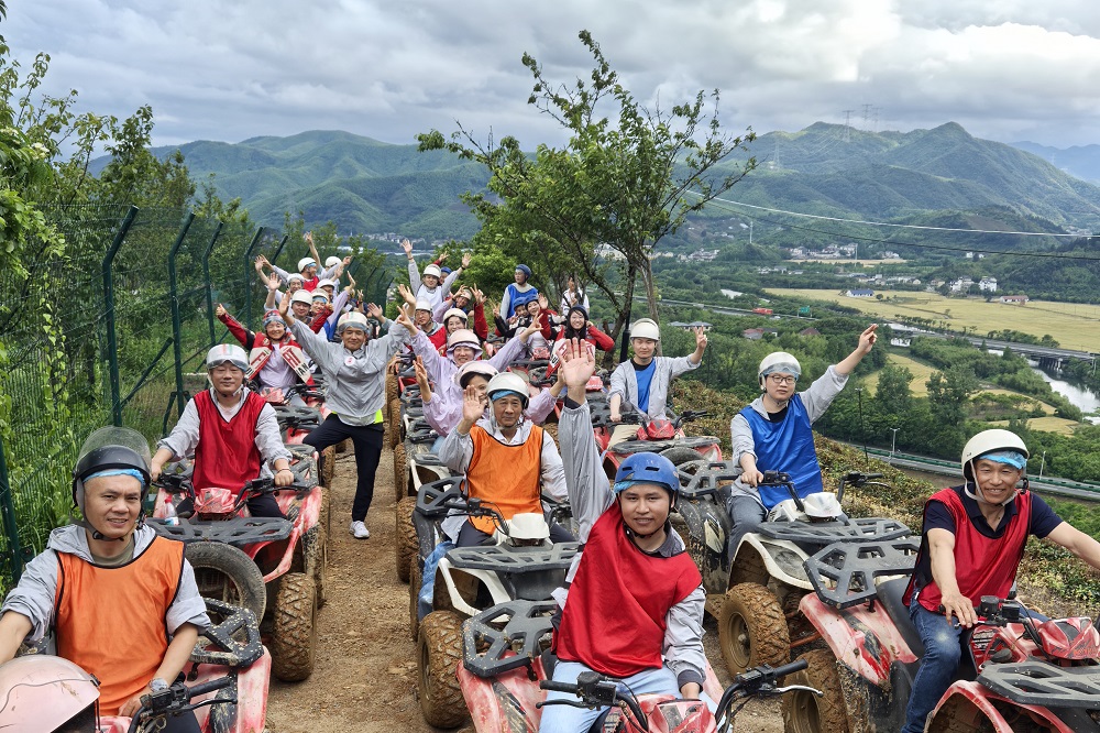 大家齊聚戶外營地,分隊(duì)體驗(yàn)射箭和水彈CS,四個(gè)小隊(duì)展開積分角逐和奪旗,命中十環(huán)、有箭上靶的都贏得了現(xiàn)場的掌聲,你來我往的戰(zhàn)術(shù)對決中水彈橫飛,大家在揮灑汗水間體驗(yàn)團(tuán)隊(duì)協(xié)作樂趣、釋放情緒。刺激的山地越野項(xiàng)目將當(dāng)天的戶外活動(dòng)氛圍推向高潮,水坑、泥濘、亂石崎嶇和彎道回環(huán)都沒能阻擋住大家勇往前行的腳步,或獨(dú)乘一車、或兩兩組隊(duì),鄉(xiāng)野道路的清新空氣和登頂一覽眾山的別樣景致是對前行者的褒獎(jiǎng),大家紛紛拍照留念。