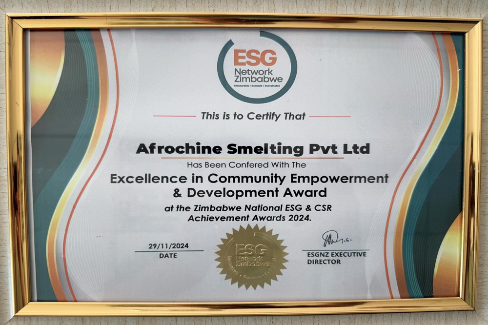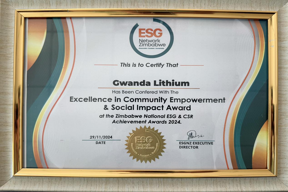 鼎森鋼鐵(私人)有限公司榮獲當(dāng)天最大獎(jiǎng)項(xiàng)——“聯(lián)合國(guó)可持續(xù)發(fā)展目標(biāo)包容性發(fā)展的環(huán)境、社會(huì)與治理(ESG)獎(jiǎng)”,此外還榮獲“環(huán)境管理與社會(huì)影響卓越獎(jiǎng)”,中非冶煉(私人)有限公司榮獲“社區(qū)賦能與發(fā)展卓越獎(jiǎng)”,鼎森煤業(yè)(私人)有限公司榮獲“社區(qū)賦能與社會(huì)影響卓越獎(jiǎng)”,關(guān)達(dá)鋰業(yè)(私人)有限公司也同樣榮獲“社區(qū)賦能與社會(huì)影響卓越獎(jiǎng)”。除此之外,公司兩位專(zhuān)門(mén)負(fù)責(zé)ESG事項(xiàng)的員工Pelagia Mutunzi(派拉·姆屯滋)和Pardon Kufakunesu(帕頓·庫(kù)發(fā)庫(kù)諾佐)也榮獲ESG管理工作優(yōu)秀高管獎(jiǎng)。