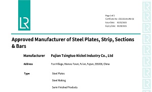 青拓不銹鋼中厚板通過英國勞氏船級社(LR)認可