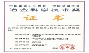 廣青科技榮獲2021年度冶金科學(xué)技術(shù)獎(jiǎng)二等獎(jiǎng)