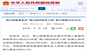(來源于2025年2月25日民政部官網(wǎng)《中國(guó)社會(huì)報(bào)》頭版新聞) 本報(bào)訊 近日,青山慈善基金會(huì)通過中國(guó)兒童福…