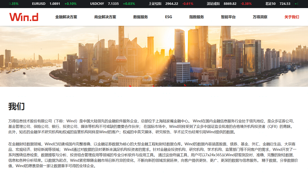 Wind是中國(guó)大陸領(lǐng)先的金融軟件服務(wù)企業(yè),在國(guó)內(nèi)金融信息服務(wù)行業(yè)處于領(lǐng)先地位,獲得了國(guó)內(nèi)外眾多證券公司、基金管理公司等一眾投資者的青睞。